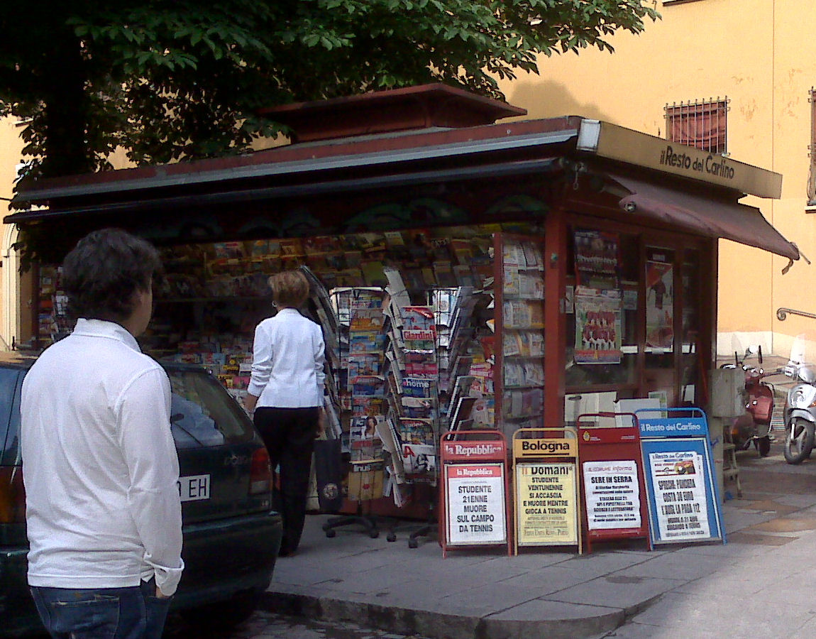 Il secondo è Daniele Carella, capogruppo di Forza Italia in Consiglio Comunale e roccioso oppositore della nostra Amministrazione, che gestisce un’edicola “storica” a Porta San Vitale e che espone la locandina, dimostrando di saper distinguere fra il ruolo politico in Comune e quello di operatore professionale. L’ho già ringraziato di persona, ma voglio farlo anche pubblicamente.