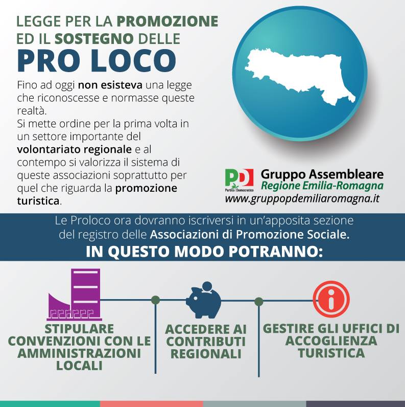 Oggi è finalmente diventato legge regionale il provvedimento sulle Pro Loco di cui sono primo firmatario, punto di arrivo peraltro di un lavoro che è iniziato nello scorso mandato dalla consigliera Paola Marani e a cui hanno collaborato diversi colleghi di maggioranza e di opposizione, che ringrazio. L’Assemblea Legislativa ha approvato la legge oggi, 22 marzo, a larghissima maggioranza col voto favorevole di PD, Lega, SEL, FI, FDI, AER e l’astensione del M5S.