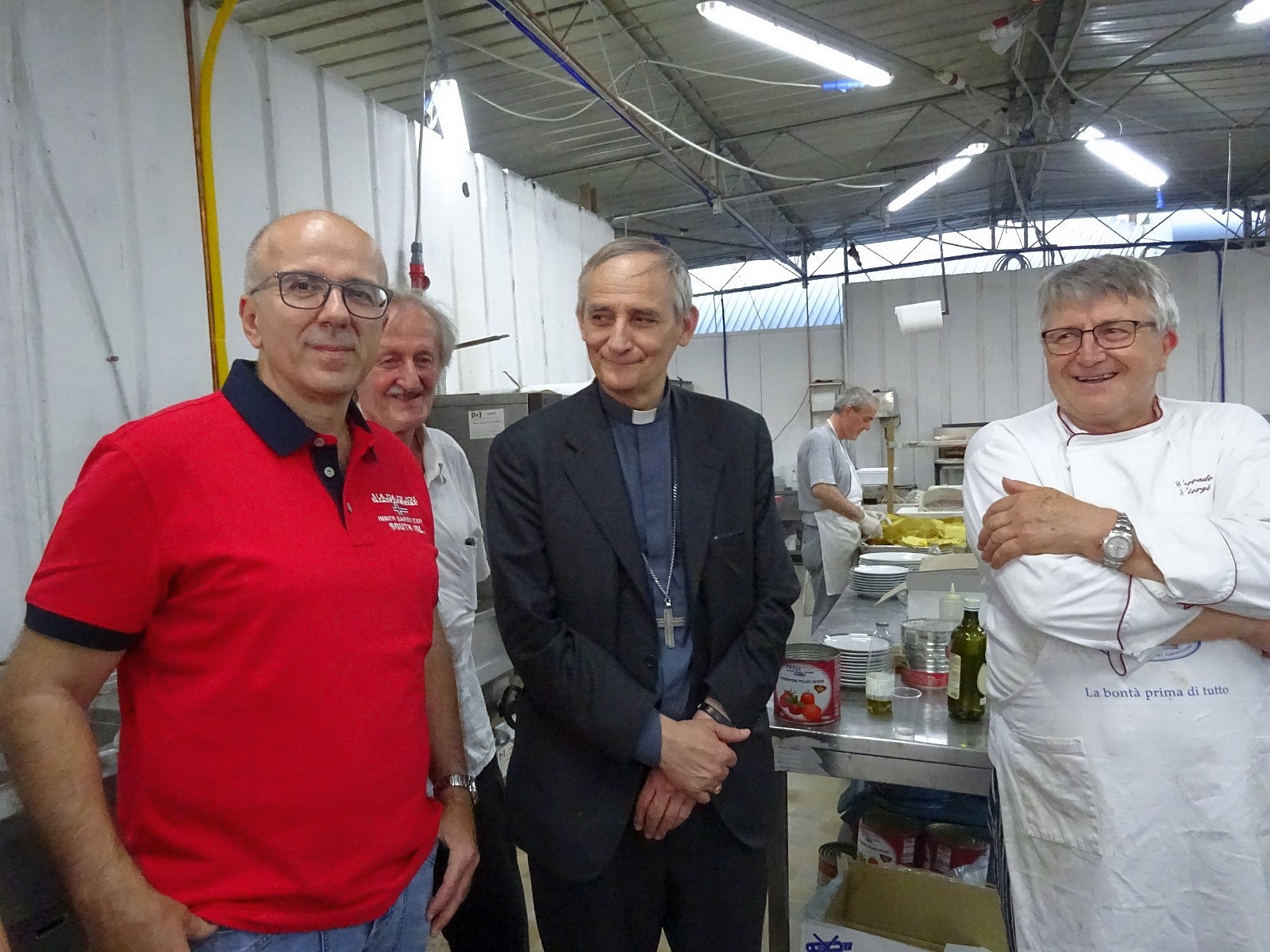 Per chiudere in bellezza, non poteva mancare una foto del Vescovo Matteo in visita nella cucina della Festa, in un abbraccio ideale ai tanti volontari che rendono possibile questo appuntamento, in cui ancora accadono cose, come il 30 giugno scorso…