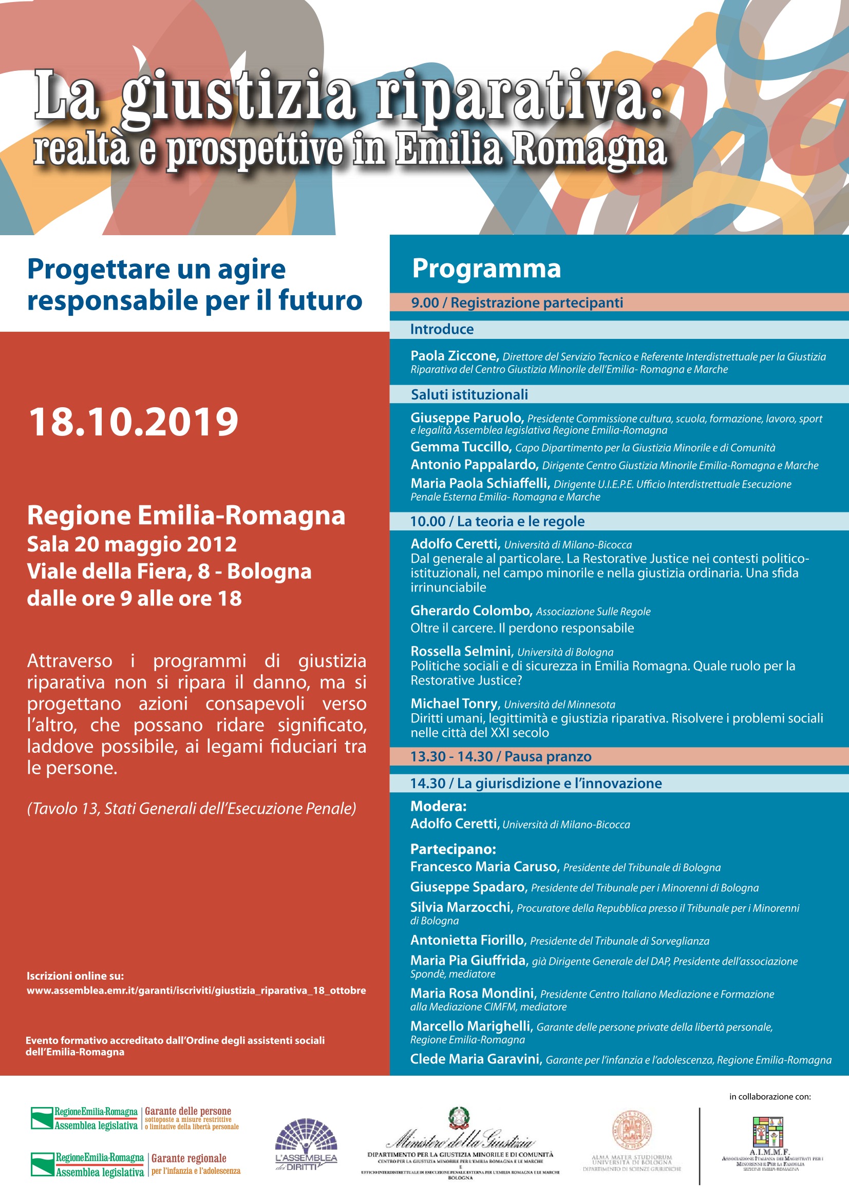 Venerdì 18 ottobre si è tenuto un interessante convegno sulla “Giustizia riparativa” organizzato dal Centro per la giustizia minorile e l’ufficio interdistrettuale di esecuzione penale esterna per l’Emilia-Romagna e le Marche del Ministero della Giustizia, in collaborazione con i Garanti regionali per i detenuti e per i minori, il dipartimento di Scienze giuridiche dell’Università di Bologna e l’Associazione italiana dei magistrati per i minorenni e per la famiglia.