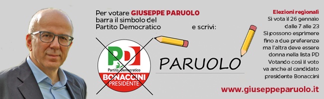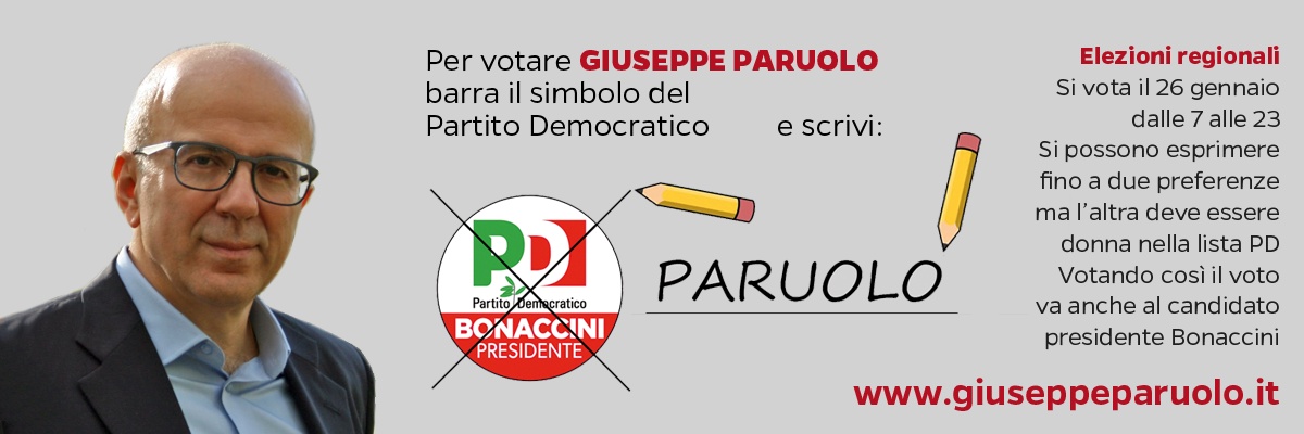 Se decidete che faccio al caso vostro, votatemi barrando il simbolo del PD e scrivendo a fianco il mio cognome: PARUOLO. E se volete davvero aiutarmi, parlate di me anche ad altre persone. Non vedete in giro miei manifesti, o altre pubblicità particolari: non chiedo contributi a nessuno e mi pago da solo una campagna elettorale al risparmio. Mi affido al passaparola: dipende da voi.