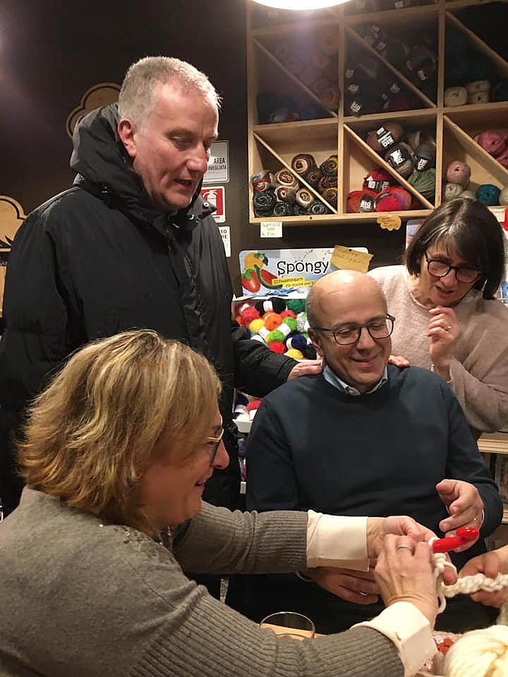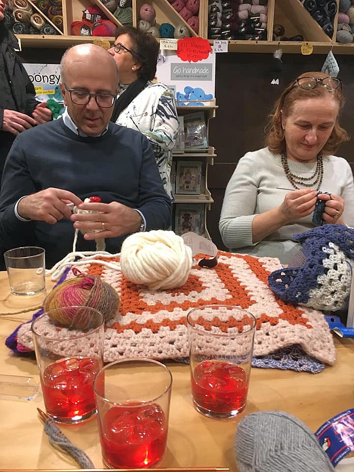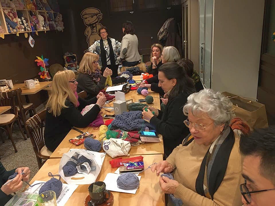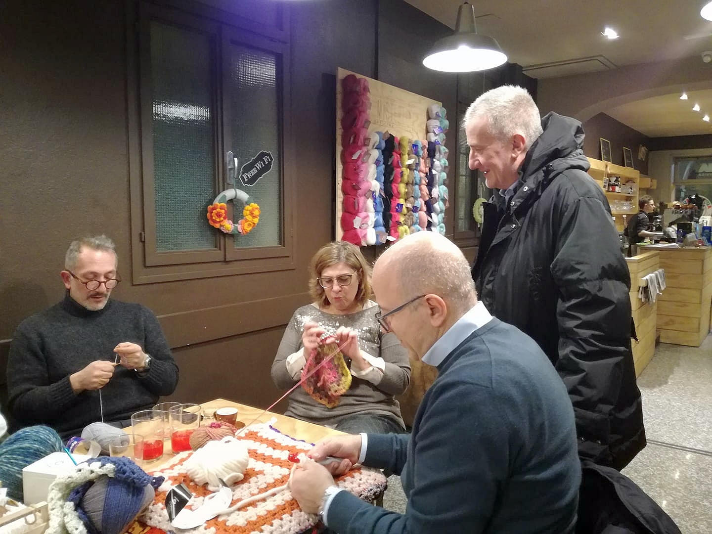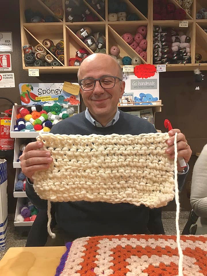 Martedì ho raccolto l’invito di un amico a partecipare all’iniziativa “Viva Vittoria” presso il Caffè dei Gomitoli in Strada Maggiore. In una caffetteria molto accogliente piena di gomitoli e ferri da uncinetto e maglia, mi sono seduto e cimentato (arduamente!) per comporre il mio quadrato all’uncinetto(ne) insieme ad altri amici e amiche più esperte.