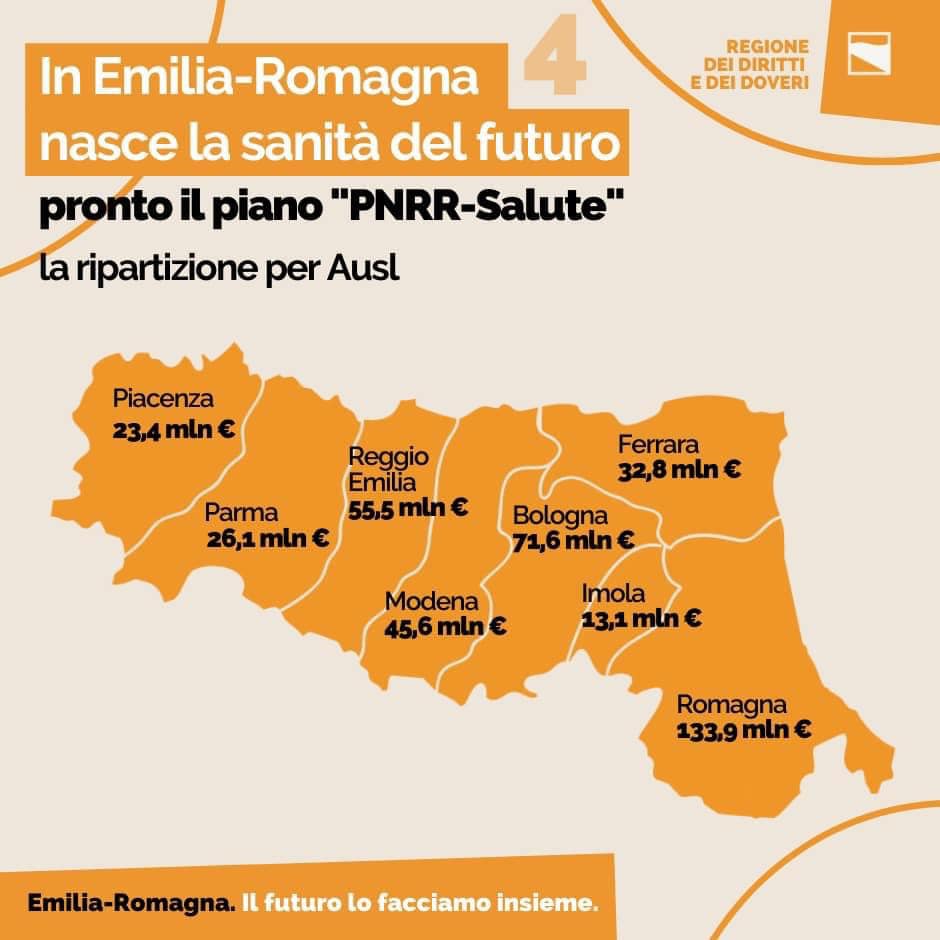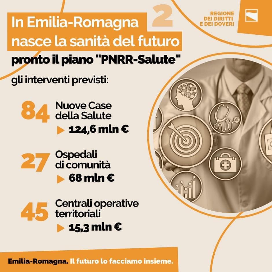 Il PNRR ha comunque fatto già passi importanti in questa direzione, introducendo per la sanità territoriale il modello organizzativo della centrale operativa territoriale che svolge una funzione di coordinamento della presa in carico della persona e raccordo tra i servizi coinvolti nell’assistenza – attività territoriali, sanitarie e sociosanitarie – dialogando con la rete dell’emergenza-urgenza. Previsto il potenziamento dell’utilizzo della telemedicina per supportare al meglio i pazienti, in particolare con malattie croniche e/o non autosufficienti. La Regione dovrà realizzare 45 centrali operative territoriali finanziate con oltre 15 milioni di euro: 3 a Piacenza, 5 a Parma, 5 a Reggio Emilia, 7 a Modena, 9 a Bologna, 1 a Imola, 4 a Ferrara e 11 in Romagna.