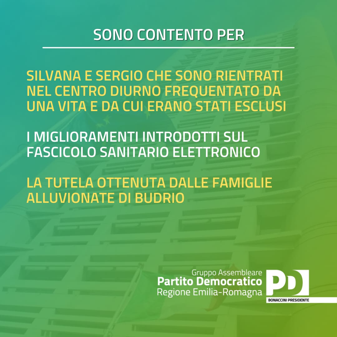 Spesso non si tratta di questioni astratte, ma che toccano da vicino la vita delle persone. E c’è soddisfazione quando si vede che si ottiene qualche risultato. Ad esempio è anche grazie alla mia interrogazione sulla loro esclusione – in quanto persone con disabilità over 65 – dal centro diurno a lungo frequentato, che Silvana e Sergio sono stati reinseriti.