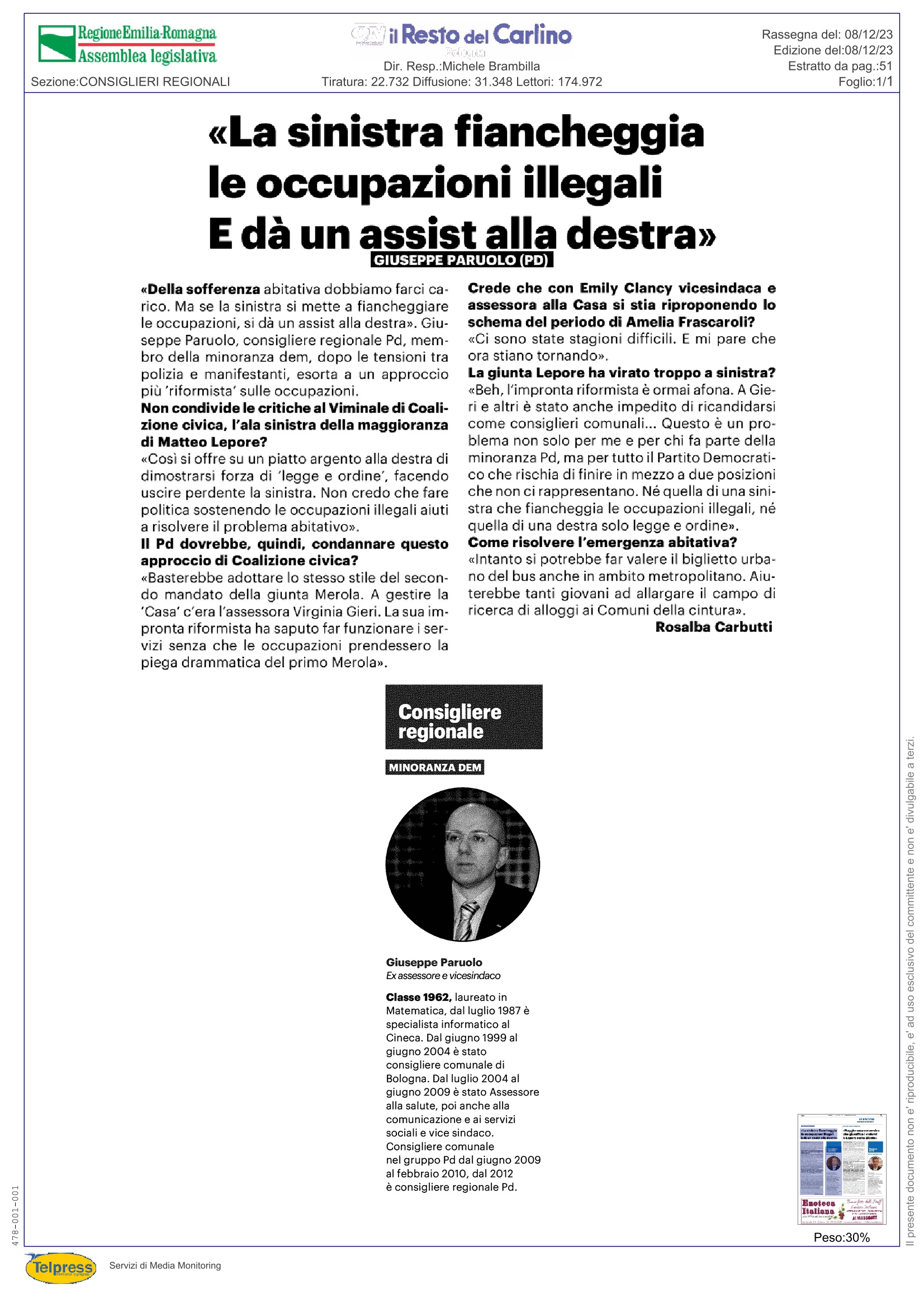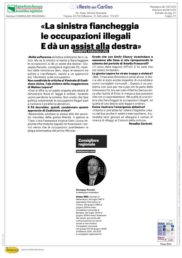 Ne ho parlato in questa breve intervista sul Carlino, sottolineando come sia sbagliato e perdente nei confronti dell’opinione pubblica interpretare il ruolo della sinistra nel senso dell’agitazione dei problemi e della giustificazione delle violazioni di leggi e regole, invece di adoperarsi perché i problemi vengano affrontati, risolti e superati. Perdente perché non risolve i problemi e perché confina la sinistra in una ridotta che ammicca all’illegalità, consentendo alla destra di rispondere all’insegna della legge ed ordine. Resto convinto che una sinistra utile al Paese deve cercare di risolvere i problemi all’interno delle regole e delle leggi vigenti, anche impegnandosi per modificarle se serve, ma senza ammiccare all’illegalità. E’ questo il modo per dimostrarsi preferibile da parte degli elettori, perché in grado di garantire soluzioni e sicurezza al tempo stesso, senza lasciare il tema della sicurezza e della legalità alla destra.
